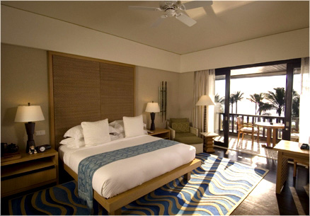 | 大型リゾートが立ち並ぶヌサドゥアエリアの中でも最大規模リゾート。敷地面積40エーカーは、東京ドーム4個半という広大さ。客室数も648室で島内最大。オープンエアのロビーは水路や池を効果的にデザインした開放感たっぷりの空間。東、西、南、北と4つのビレッジがあり、中庭にはラグーンが広がる。それぞれの部屋には、眺めの良いバルコニーが付いている。どこまでも続くような600mもの長さも魅力。 |