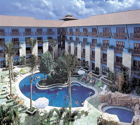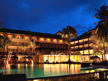 | 空港から車で5分程の好立地のバリ島リゾートの醍醐味を兼ね備えたオンザビーチのリゾート。便利な立地ながら静寂に包まれたリゾートは、国際会議で 使用されるなどエグゼクティブなお客様の利用も多い。大きな吹き抜けのロビーのむこうにはレストラン、プール、ビーチと広がり開放的なリゾートをつくっている。海の音を聞きながらトリートメントできるスパがお勧め。日本語が話せるスタッフが多いのは心強い。 |