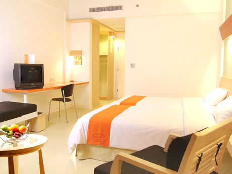 | 2004年にオープンしたスタイリッシュな新リゾート。天井が高く開放的なエントランスを一歩入ると、ホテルのメインカラーである南国バリ島らしい鮮やかなオレンジ色で迎えてくれます。客室はスタイリッシュな造りで、淡い色を基調としたソファが雰囲気を盛り上げてくれます。クタビーチへは徒歩3分程の立地条件も抜群。ファミリールームやキッズクラブもあり、家族連れには快適な滞在になることでしょう。 |