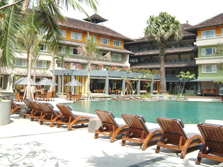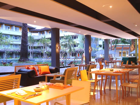 | クタスクエアに徒歩3分という好立地。2004年にリノベーションが済んだ客室は、アジアンテイストのビルティングタイプで、新しく清潔感あります。中でもデラックスのお部屋は広さ十分で、照明も有色灯で落ち着いた雰囲気でお勧めです。街に面したレストランはいつも人で賑わっています。1階のスポーツカフェも人気です。 |
