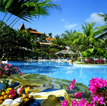 | ビンタン島最大級の広大な敷地を持つ大型5星リゾート。白砂のビーチが目の前に広がる、素晴らしいロケーション。インドネシア建築様式で建てられ、風が抜ける高い天井のロビーなど、開放感満点です。合わせて10以上のレストラン、カフェがあり、様々な料理が楽しめるのも特徴。敷地内には、本格的なスパや18ホールのゴルフコースまでもあり、施設も充実しています。 |