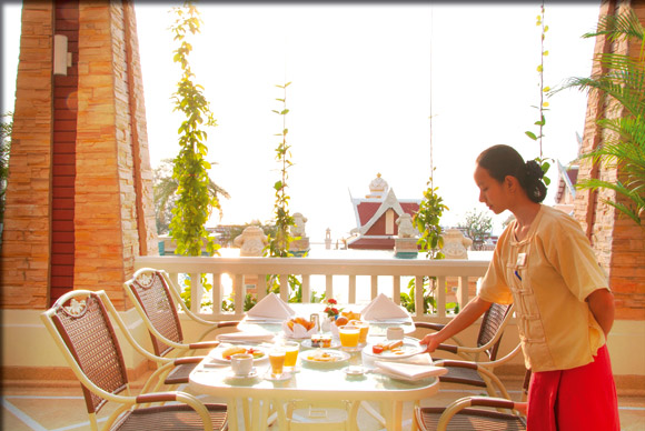 | ホアヒン空港とホアヒンタウンの中間に位置し、クライカンウォン・ビーチの海辺に建つリゾート。インペリアル系グループだけあり、クオリティー高いサービスが受けられます。プールやフィットネス、子供の遊技場やカラオケなどレジャー施設が充実しています。夕暮れになれば、「Sea Spray」や「Mon Talay」のオープンエアテラスで、星空の下お食事をお楽しみ頂けます。ホテルから一日数本の無料送迎サービスを運行していますので、ホアヒン中心街へ10分程度で行くことができます。 |