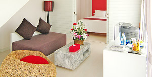 | チャアムのビーチ沿いに2006年にオープンした4星の大型リゾートです。細長いプールを囲むように建つタイスタイルの赤い屋根が特徴的な美しい建物です。ロビーは大理石仕様の床やエレガントなインテリアで統一されています。客室はタイシルクをふんだんに使った上品で優雅な内装です。ゆったりとした広さを確保している50平米からなる客室は、タワーゾーンとレジデンスゾーンに分かれていて、白亜の建物が印象的で、綺麗で落ち着いたインテリアで寛げます。レジデンス・デラックスプールは、窓からそのままプールへ入れますので子供連れに人気です。レジデンス・デュプレックス・プールは、1階にリビングスペース、2階に寝室のロフトタイプのお部屋です。 |