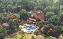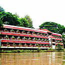 | カンチャナブリー市内からエラワン国立公園へと向かう途中の自然豊かな環境に位置するクウェー川沿いのリゾート。白い壁に赤い屋根の高層の建物で、ひときわ目立ちます。広大な敷地のガーデンは美しく、バンコク市民に人気があります。客室はスーペリアとスイートがあり、エアコン、衛星放送TV、ミニバーが完備し、バルコニーが付いています。バスルームは、バスタブとシャワーが独立しているのが特徴です。ホテル内には最大500名収容出きるバンケットルームがあります。アクティビティのプログラムも豊富に用意されていて、ホテル内の2つのプールや、マウンテンバイク、カヌーなどが楽しめます。 |