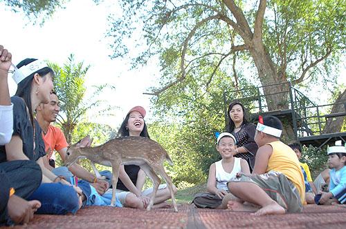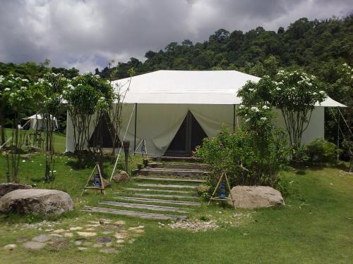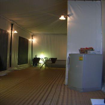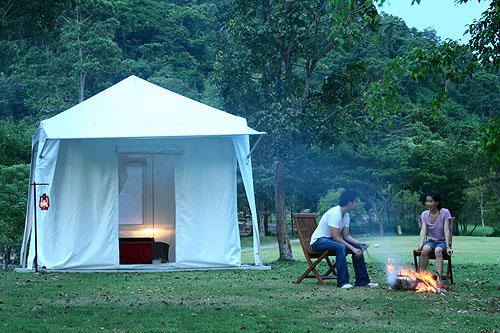 | チョンブリ県のカオキヨ・オープン・ズーという広大な敷地の動物園内にある高級テント型リゾートです。ここでは、自然の状態で飼育されている動物達と触れ合う事ができ、特にナイトサファリツアーで見学できるホワイトタイガーは迫力満点で家族で楽しめます。テントは山の斜面の草原一角に建てられています。客室内はシンプルで、床にはゴザが引いてあり、シングルベッドが2台で、ツインベッドとしてご利用出来ます。エアコンや冷蔵庫も装備されています。客室タイプは、2〜3名で宿泊できるWillow(ウィロウ)、Willowが2つ繋げた4〜6名で宿泊できるFir(ファー)、最大8名まで宿泊できるCrown(クラウン)の3タイプです。Crownのみ専用のトイレとバスルームがありますが、WillowとFirはバスルーム、トイレは別棟になっていて、男性、女性それぞれ入口が左右に分かれています。ロッカー、洗面台、トイレ、シャワーテントがあります。 |
