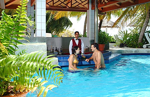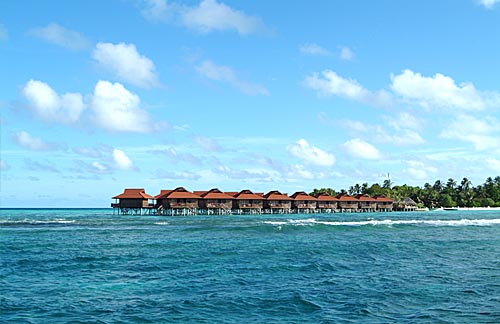 | ビーチとラグーンの美しさに定評があるリゾート。島の周りにはマンタポイントをはじめ、モルディブ有数のダイビングポイントが点在しています。 ダイビング以外のマリンスポーツも盛んで、モルディブでは類をみないほどです。リゾート内にはイルカの噴水付のプール、ジャグジー&ジム、5つのレストラン、5つのバーなどの施設を完備しています。ディスコやカラオケもお楽しみ頂けます。スーパー・デラックスが220室、水上バンガローが40室あります。 |
