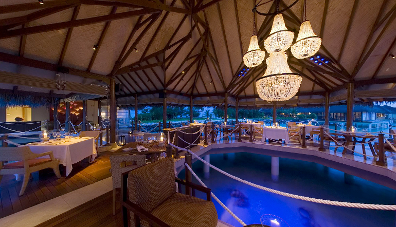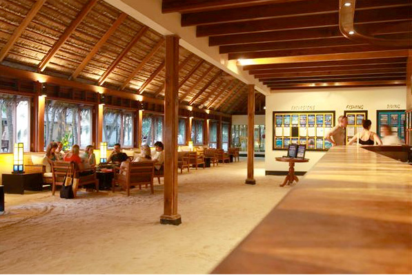 外洋と環礁の内側を結ぶチャネル(水路)に浮かんでいることから、外洋からの潮に恵まれたコンディションで、島の周りにハウスリーフが発達。特に水上コテージ周辺は、外洋からの回遊魚も多く、ダイバーに人気。水上コテージとハウスリーフを併せ持つリゾートとしても貴重な存在。サンドカーペットのバーやスパも完備で、ダイビング後のリゾートライフものんびりと過せそう。