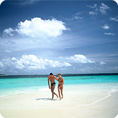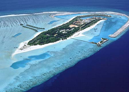 | 国名はモルディブ共和国。古代インドの言葉で「島々の花輪」を意味する、「Malodheep(マロドヒープ)」から名付けられたというモルディブ。インド洋の珊瑚礁で形成された島々は約1200余りで、その内の約900の島がリゾートとして開発されています。1島に1つのリゾートしかなく、島そのものがホテルで、ほとんどが歩いて20分で1周できる小さな島々です。各リゾートのビーチの砂はサラサラのホワイトサウンドです。各リゾート50部屋程度と少ないところがほとんどで、他の国では考えられないほどプライベート感覚で寛げます。まさに地上の楽園を独り占めで、満喫できる事でしょう。人口は首都マーレに約8万人、モルディブ共和国全体で約28万人。 |
