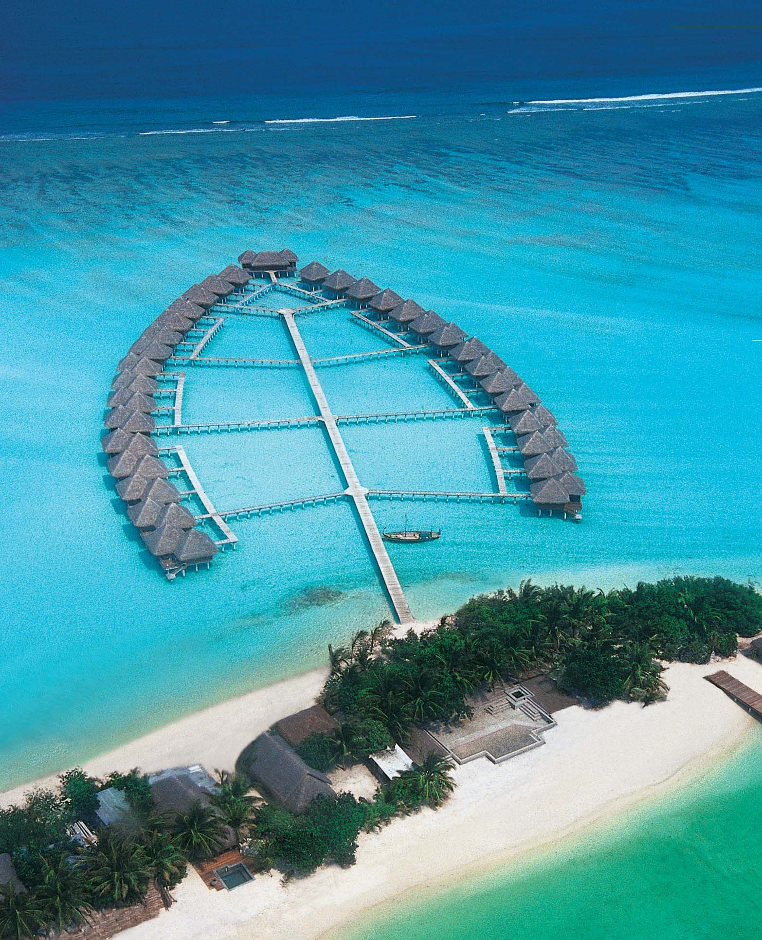 モルディブで2番目にオープンした老舗リゾート。真ん丸の可愛らしい島の形が特長で、その周辺にはぐるりと美しいハウスリーフが広がっています。ダイビングからマリンスポーツまで多彩のアクティビティを楽しめるのが人気。ウィンドサーフィン、カタマラン、カヌー、水上スキー、パラセリングが揃っています。リゾート内にはクリニックやキッズルームも備え、ファミリーにも安心です。近くの無人島「クダバンドス」へのりピクニックツアーも実地している。