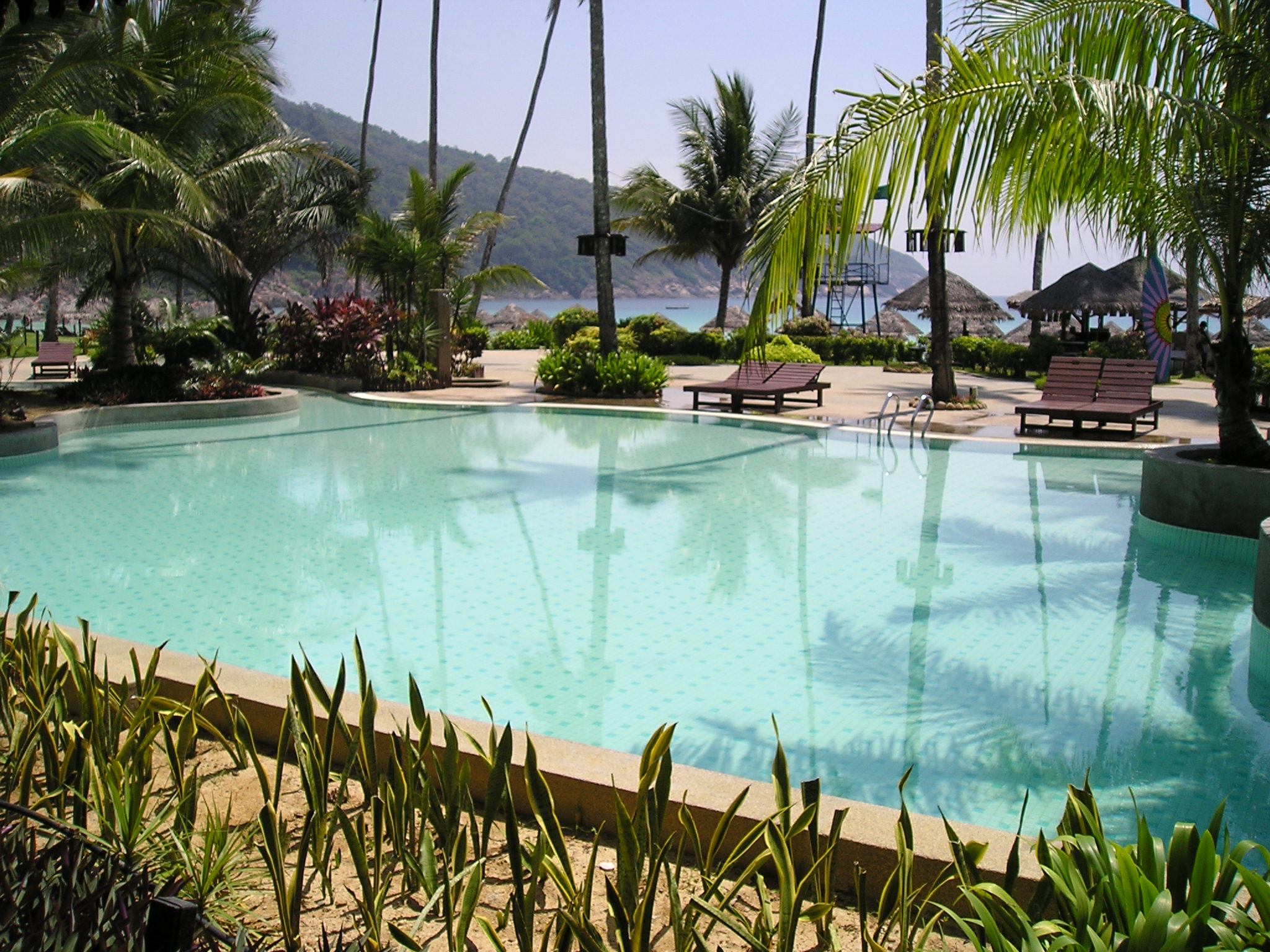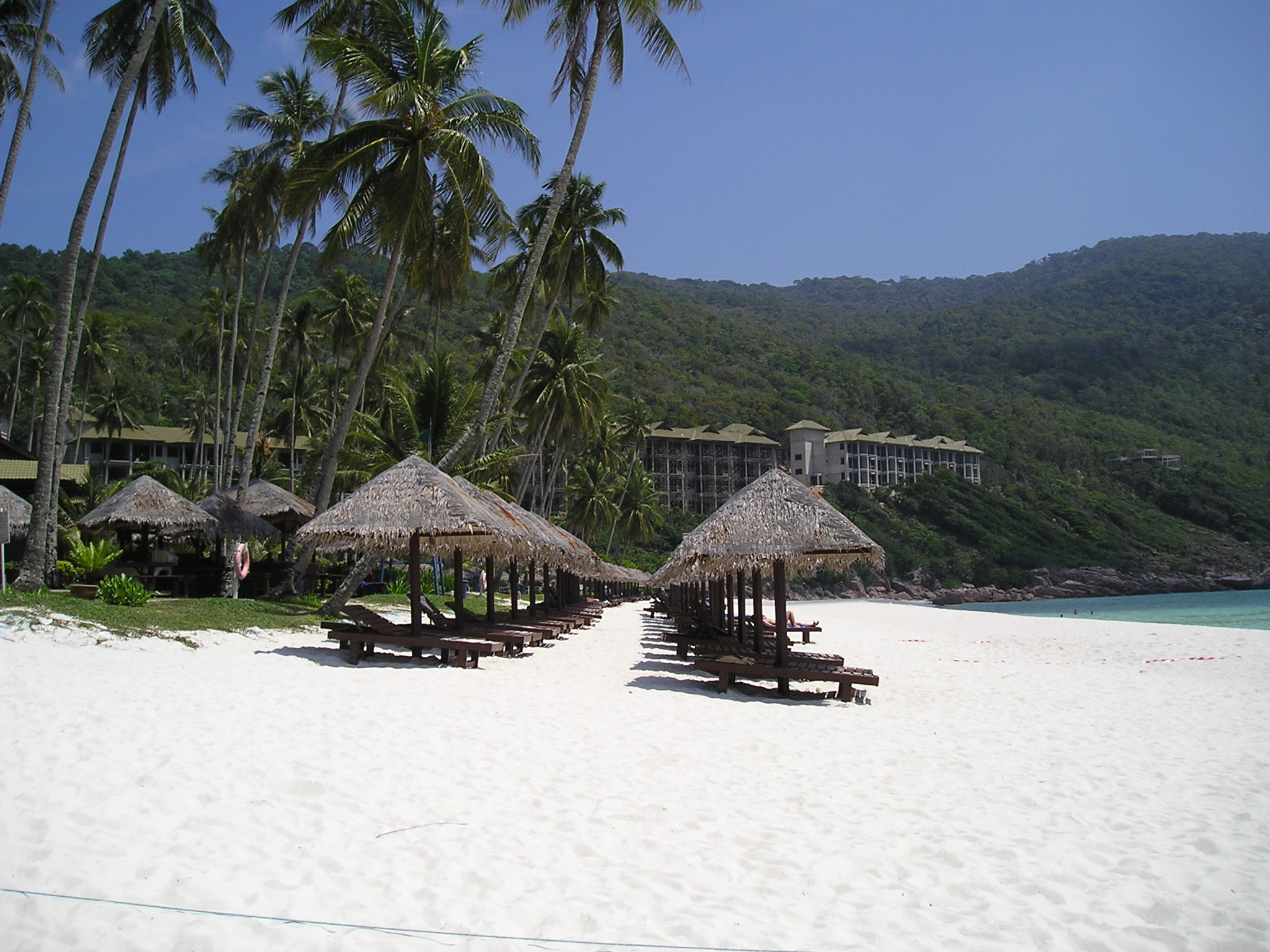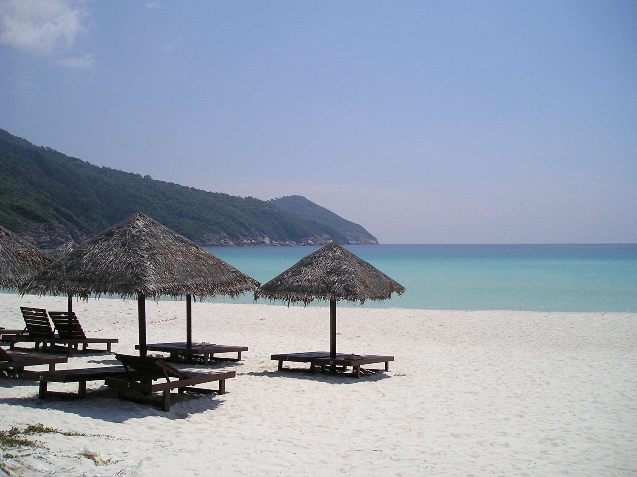 | マレーシア・トレンガヌ州にあるレダン島は、トレンガヌの本土側から46kmに位置します。レダン島は、マレーシア政府の海洋保護区域(国立海洋公園)に指定されてる為、ここに住む珊瑚と生物に対する徹底的な保護政策が取られています。決められたポイント以外ではフィッシングもダイビングも出来ないほど徹底してます。よって、珊瑚の状態は抜群に良く、ビーチ付近でもその美しさを十分に堪能出来ます。ベルジャヤ・レダンホテル前のハウスリーフにも珊瑚の広がるポイントがあり、シュノーケリングでも十分に楽しめます。ビーチの砂はとてもきめ細かく、真白く、眩しい程です。藻が生えていないので、波打ち際も綺麗です。スタッフの手入れが行き届いているのか珊瑚のかけらも落ちていないので、安心して裸足で歩けます。 |