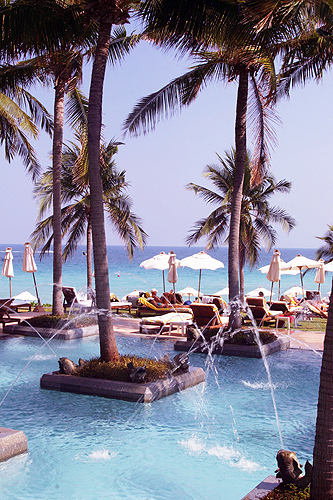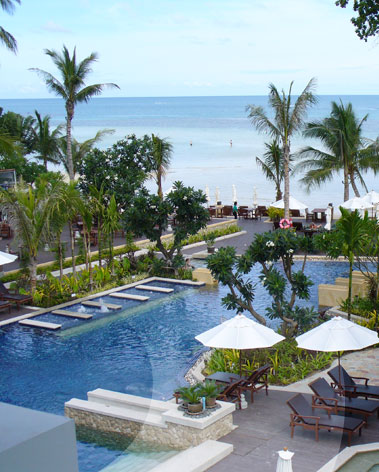 | タイ資本のセントラル・ホテルズ&リゾーツ。チャウエンでは数少ない全室海の見える客室を確保。コロニアル調の白亜の客室棟に、美しいガーデン、背の高いヤシ、豪華リゾートならではの貫禄と華やいだ空気が流れる。各種トリートメントを揃えたスパや、最新マシンのフィットネス、ジム・トンプソンも軒を連ねるブティック、エアロプールや噴水を配した遊びに富んだプールなど、施設のラインナップも充実。 |