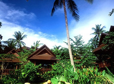 | 熱帯植物が鬱蒼と繁る敷地内は、涼しげな木陰と静けさに包まれ。賑やかなチャウエンの中心にありながら、緑溢れる敷地が騒音を遮る。全室コテージタイプの客室は、ナチュラルテイスト。天蓋付きベッドなどのインテリアは、節目の刻まれたままの天然木を使い、南の島らしい雰囲気。海とメインロードに挟まれ、ビーチ側から内陸へ向かって、レストラン、プール、上位カテゴリー順のヴィラ群、レセプションが並んでいる。 |